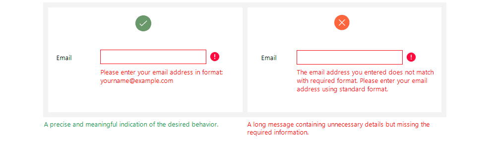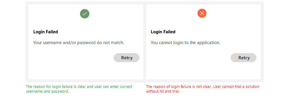 Error messages should provide only the necessary information, as users don’t have much time to read. Ensure the message clearly explains the issue and how to resolve it in a concise yet effective way.