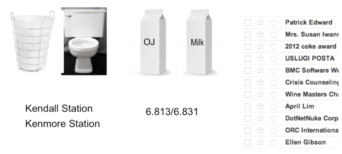 However, because the milk carton and juice carton are placed close together and look similar, you accidentally grab the juice and pour it instead.